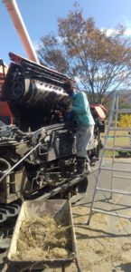 稲刈り後の機械の中に残ったわらカスなどのごみを