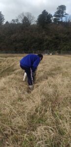 昨日より岡村氏、急いでタマネギ&ニンニクの草取り。