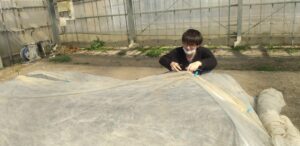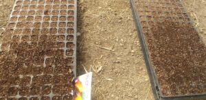もう春、研修生は竹田氏は自主課題の野菜の種播き