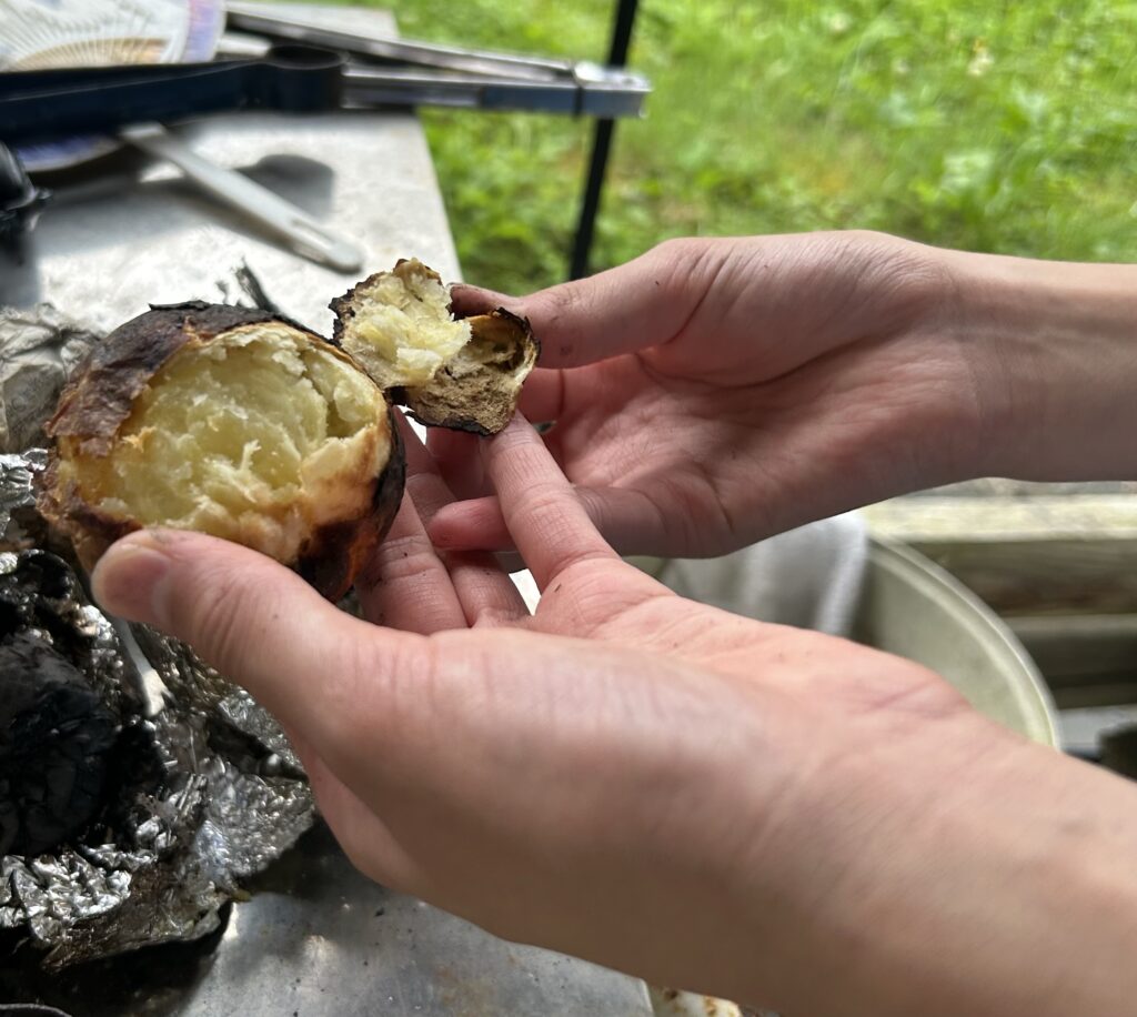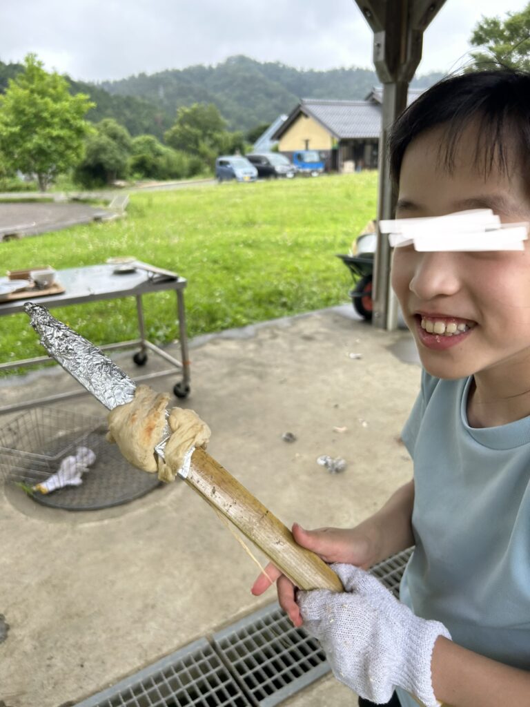 恒例になりつつあるピザは、焼きに時間がかかるので皆が大切に焼き上げる棒パンにしました。