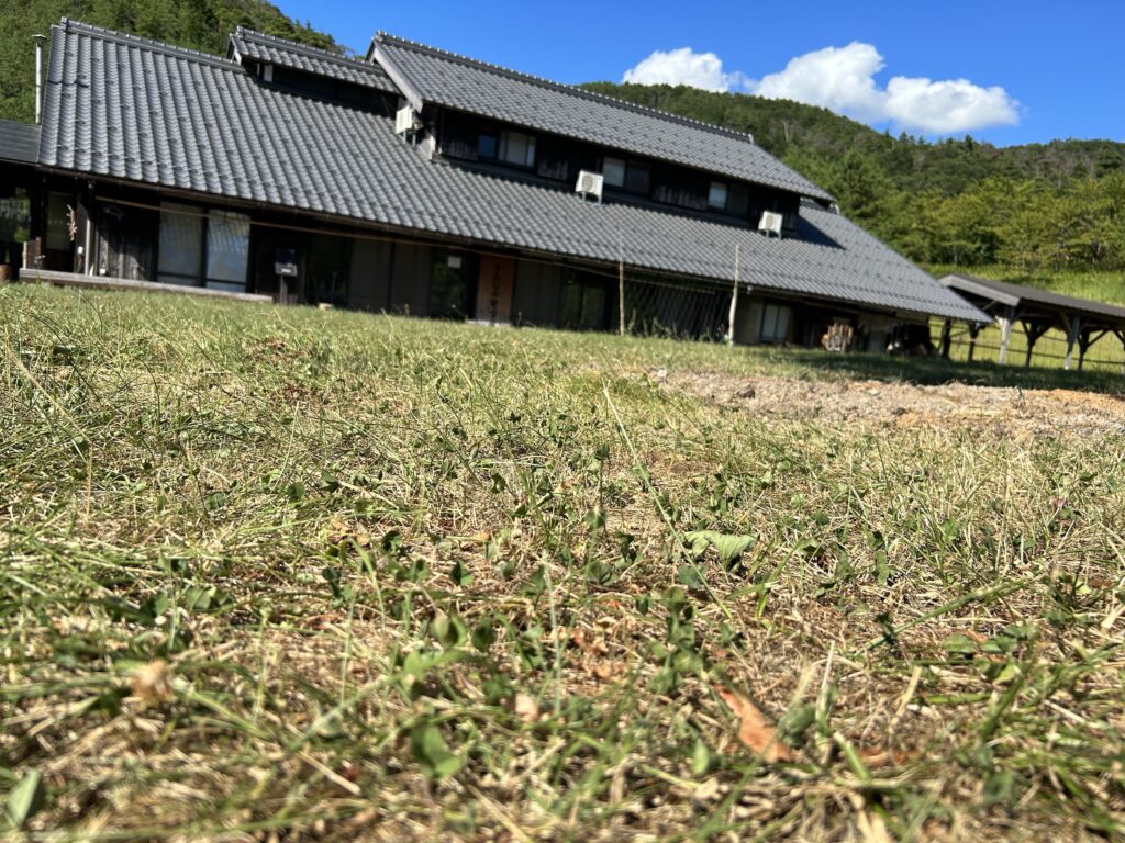 施設の芝生(雑草?!)は雨が降らず、枯れてきました。