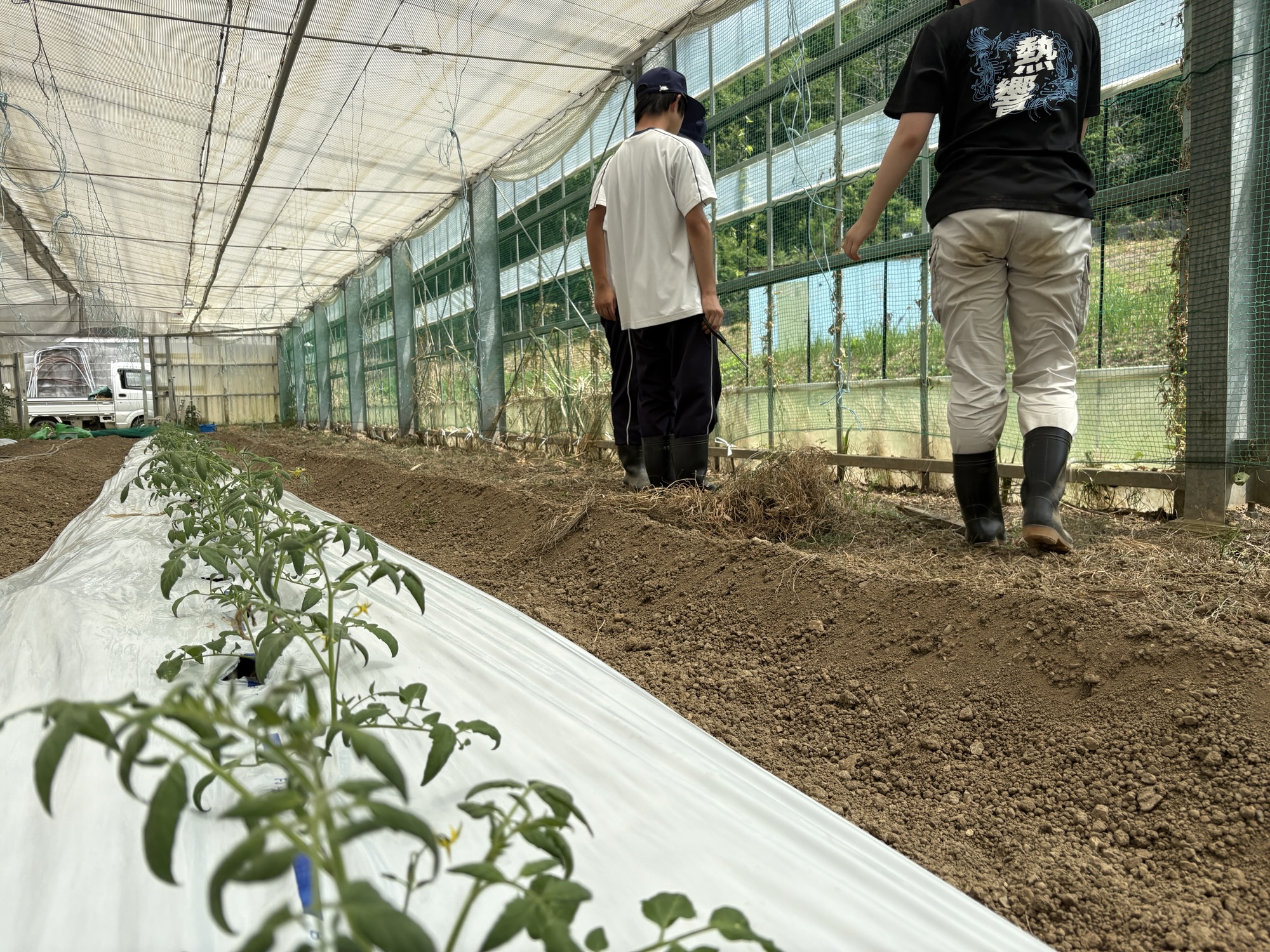 これで、あとはトマトの背丈が大きく育つのを待ちます。