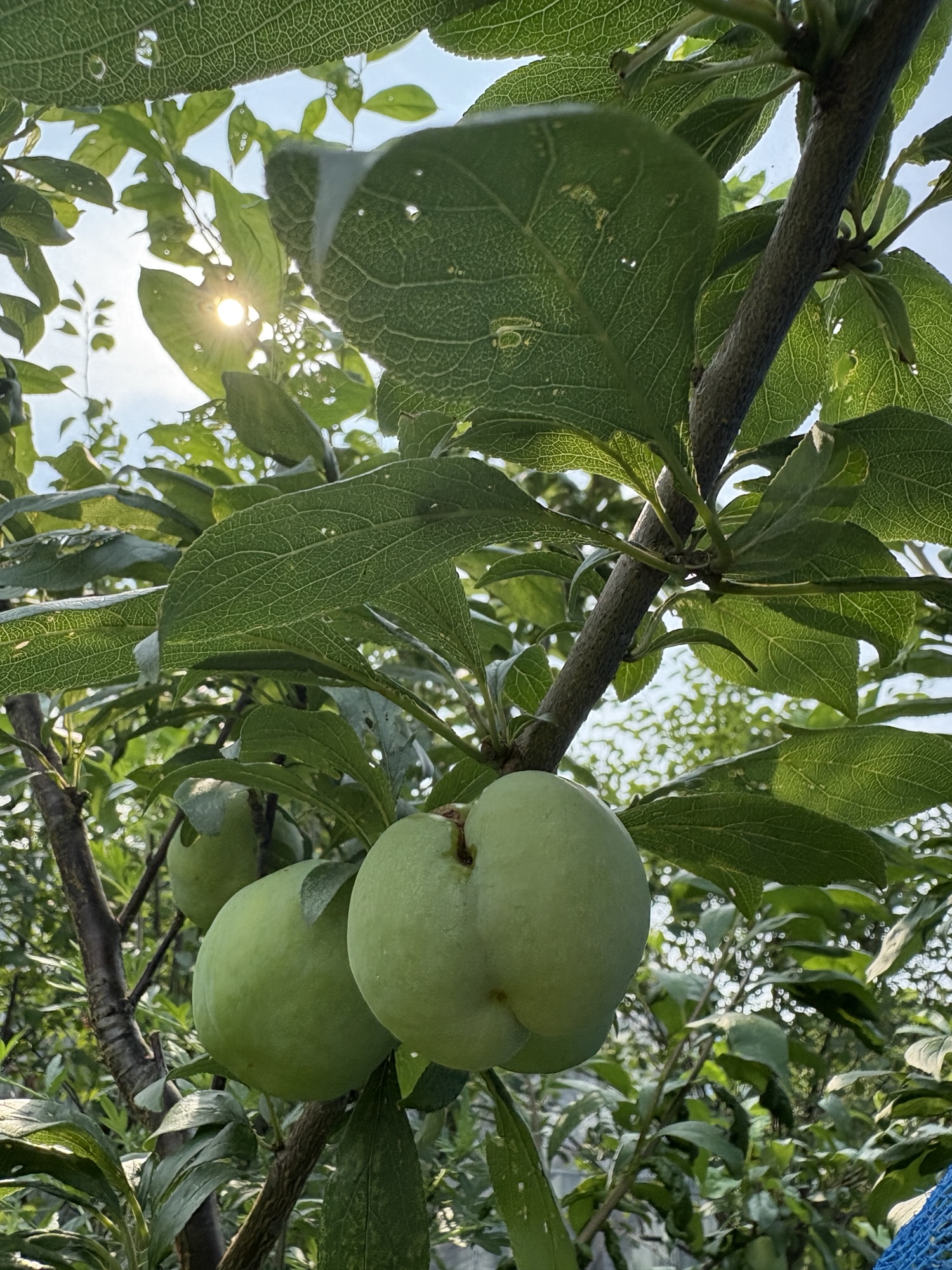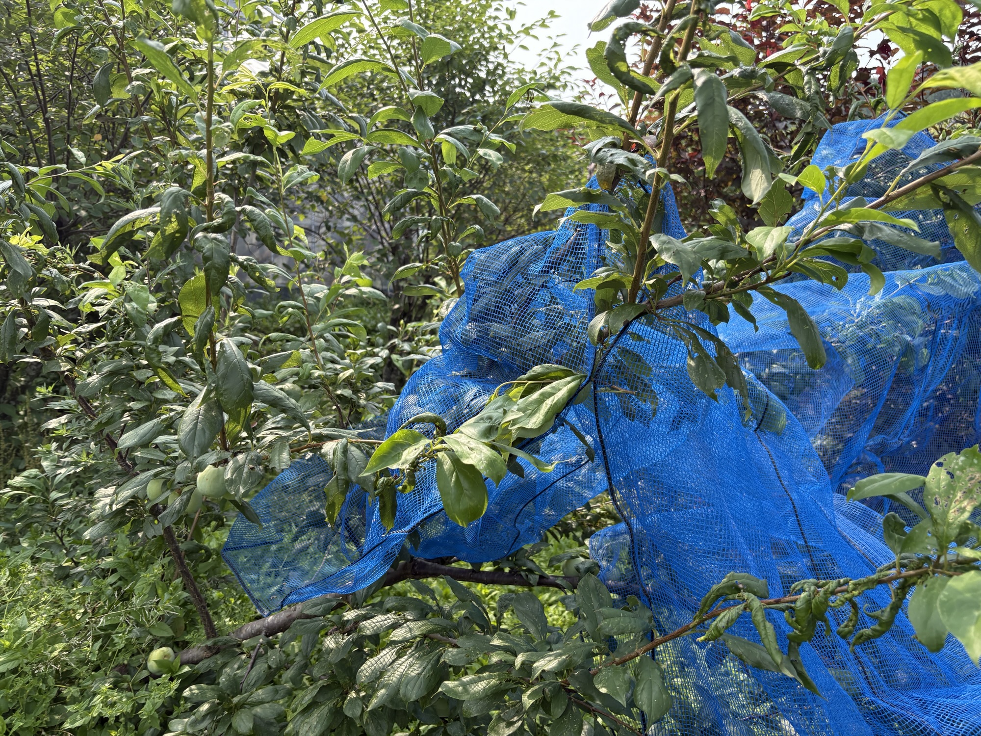 スモモもモモもいい感じですので、鳥に食べられないように、気持ちネットを。