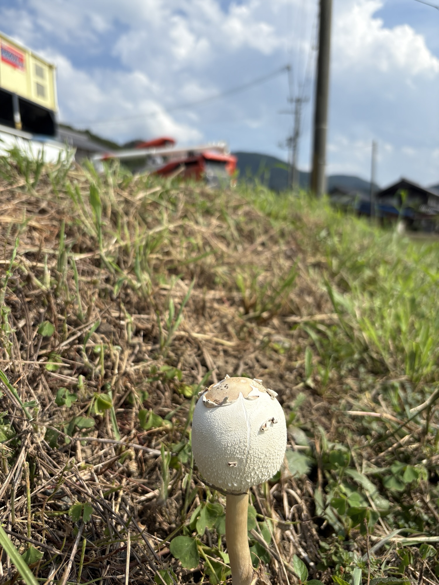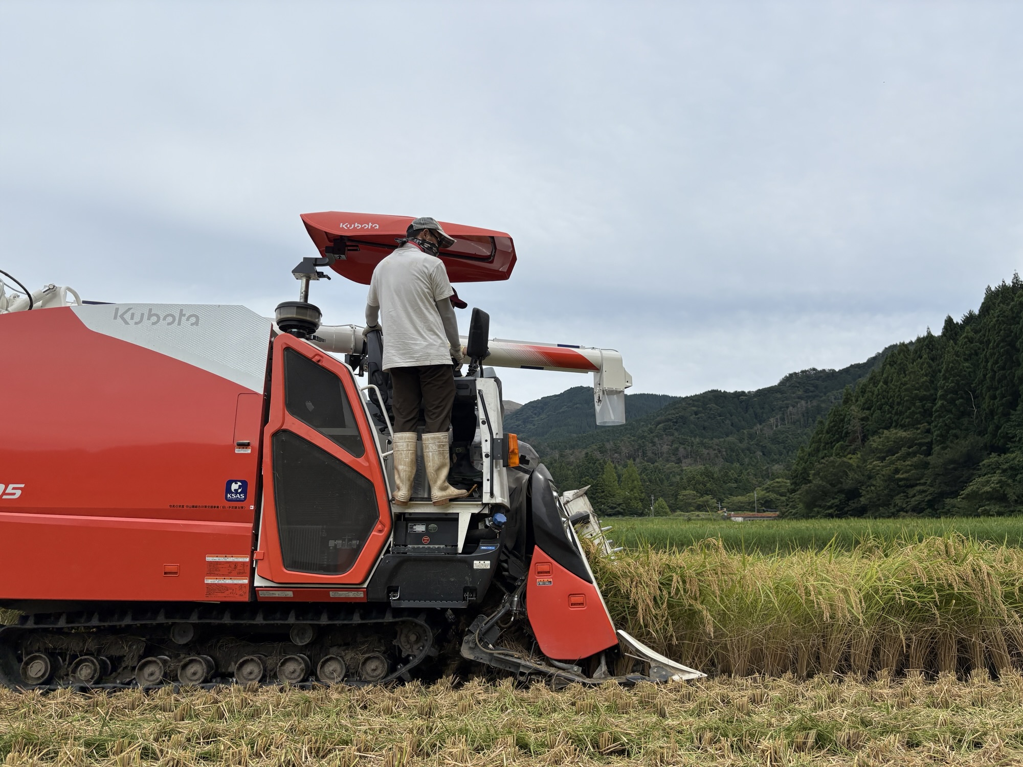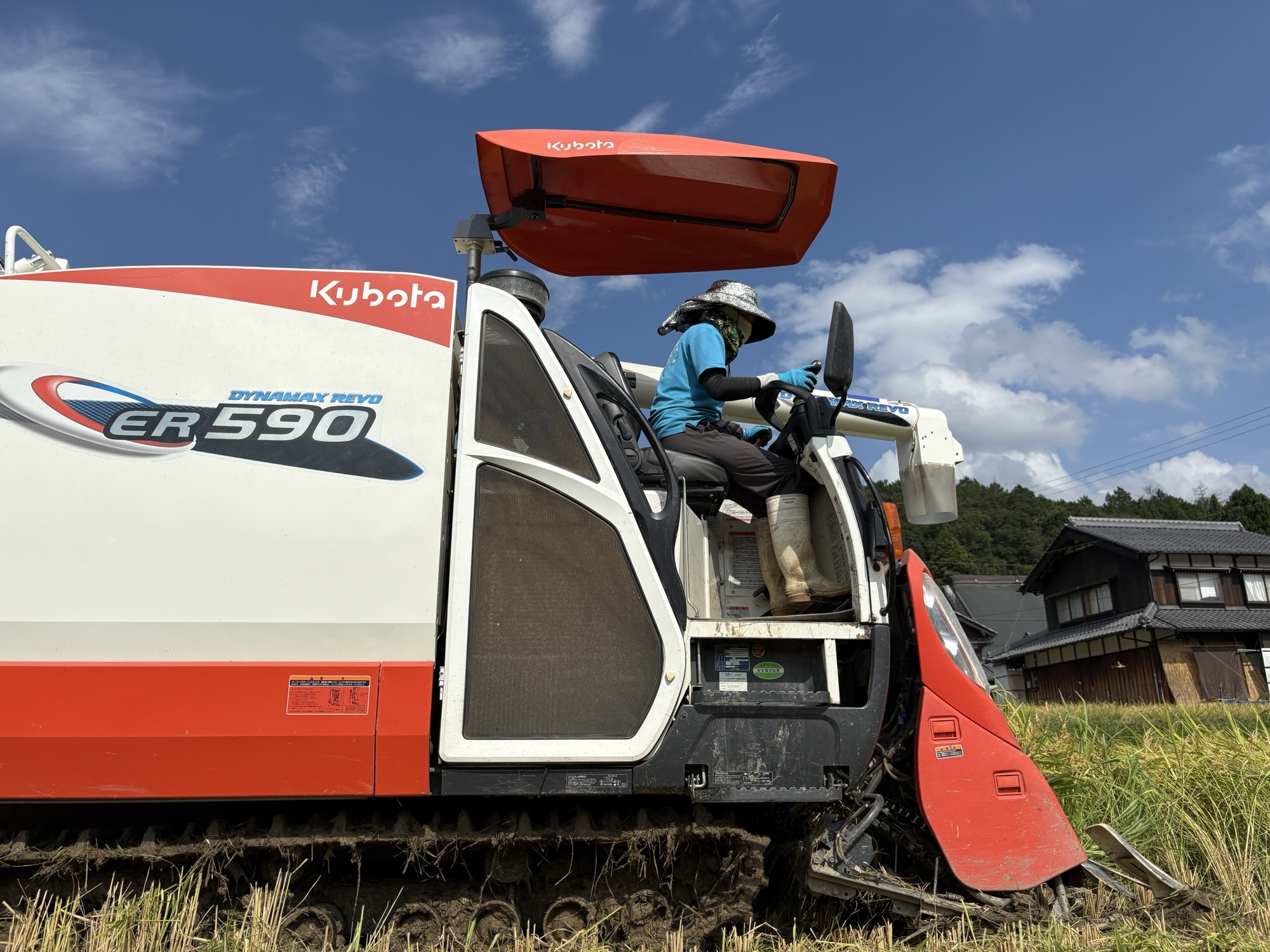 いつもコンバインを先導してくれる務氏ですが
