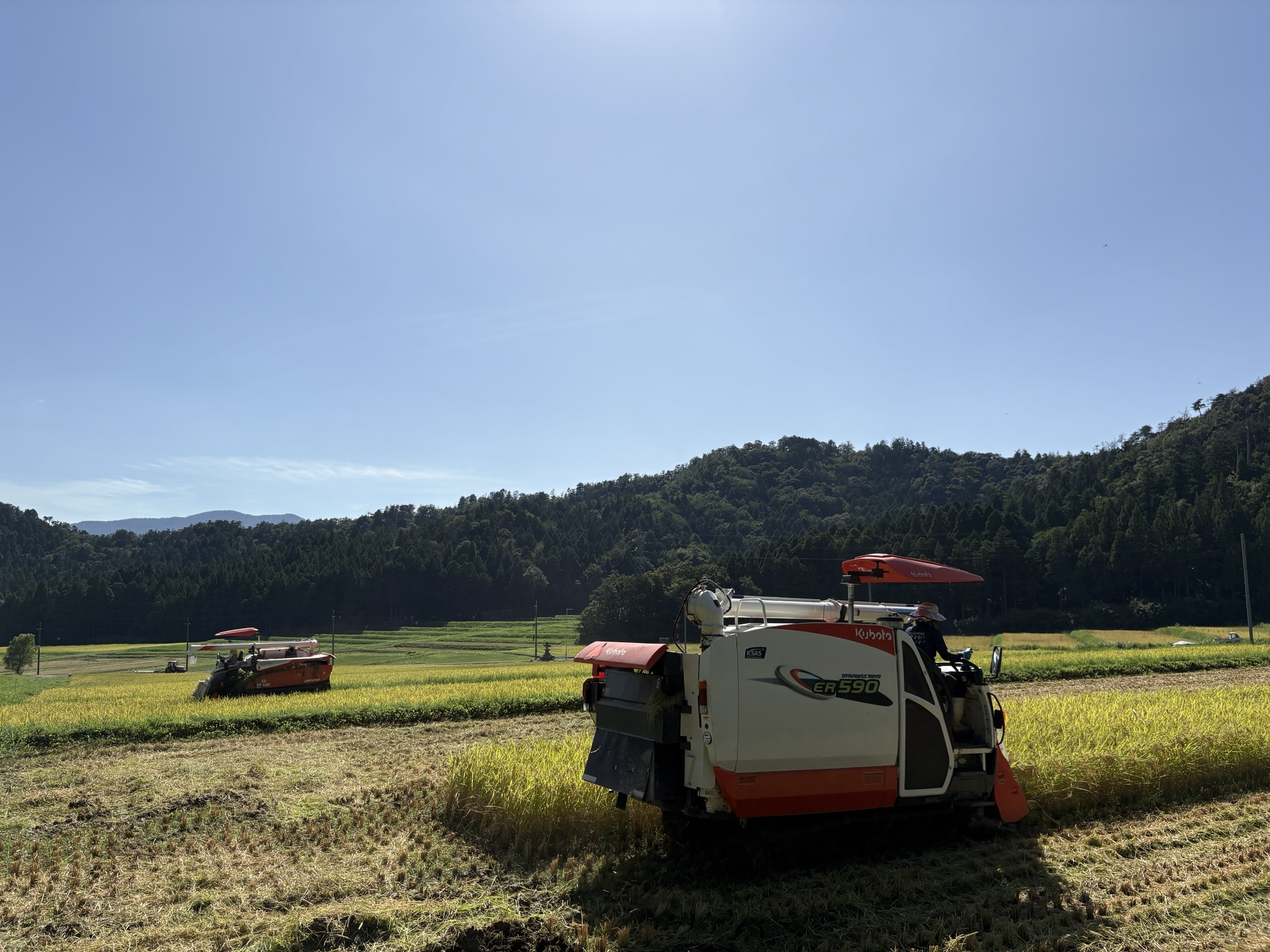 本日は雨が降るまでコンバイン2台で