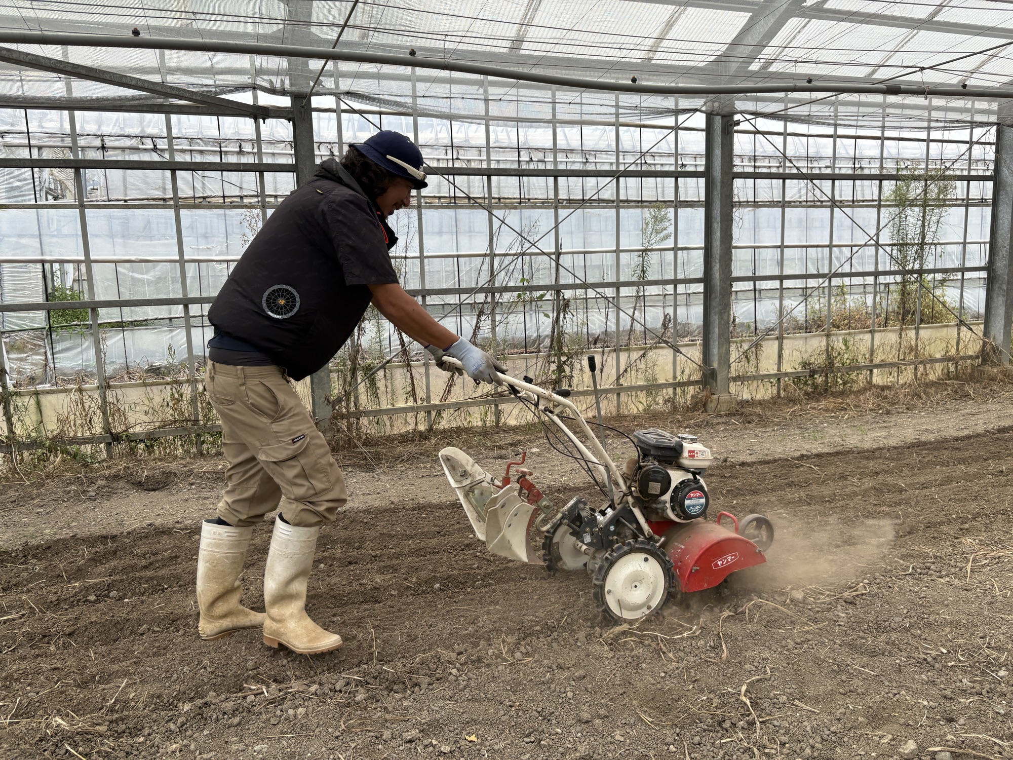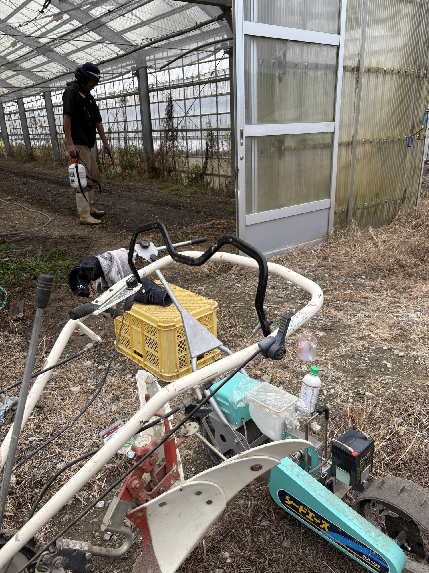 ハウスにほうれん草、小松菜を撒きました。