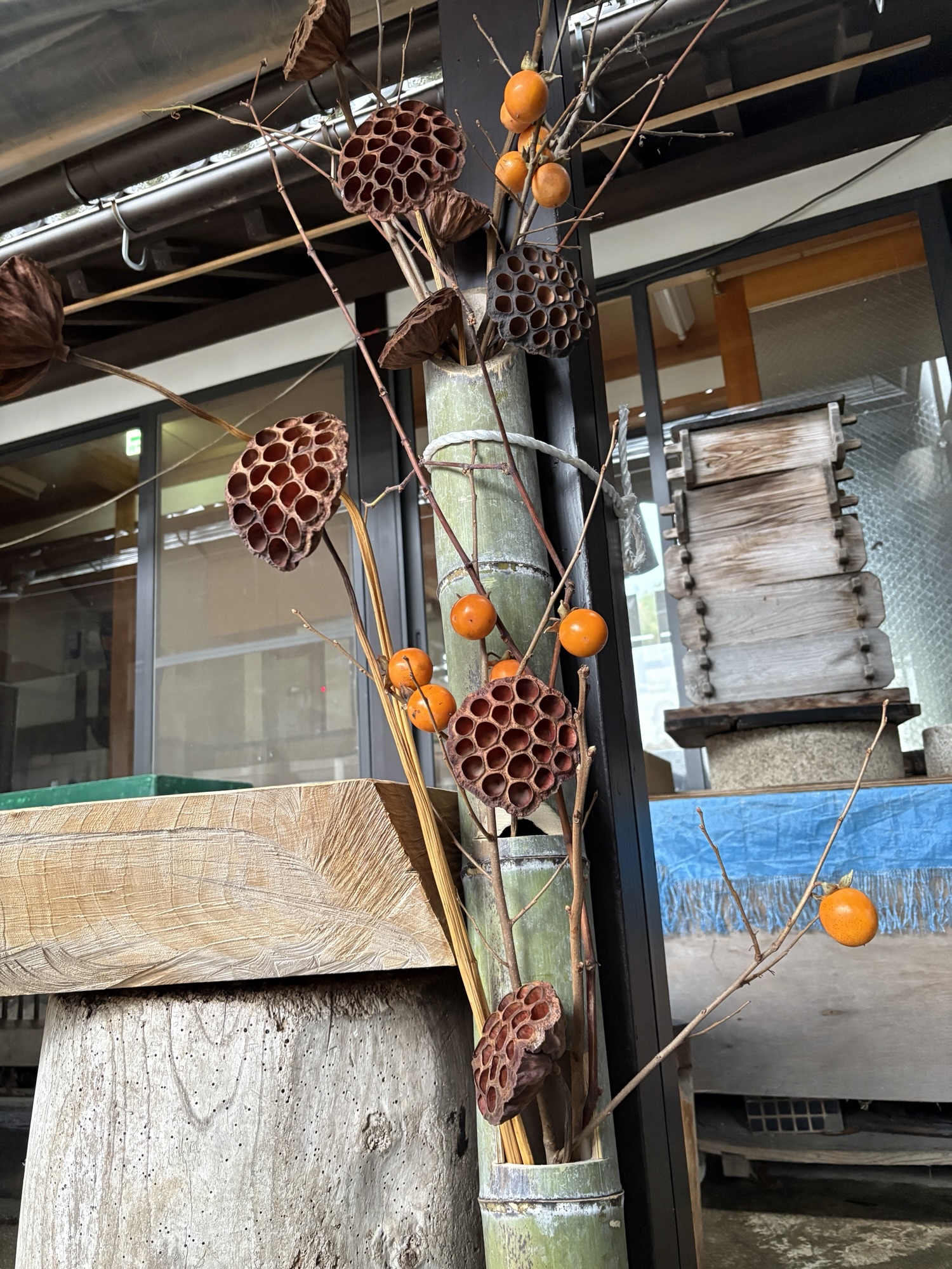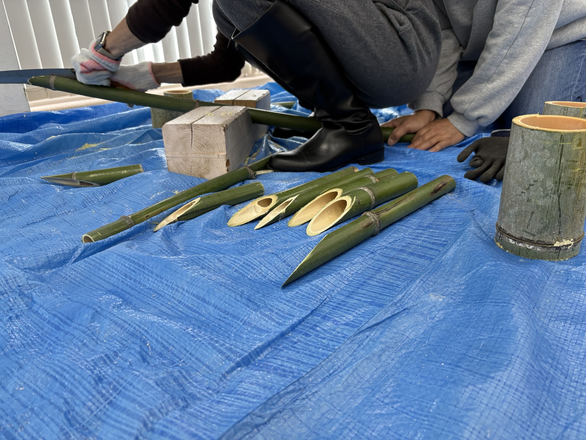 ノコギリで竹を切るところから体験して頂きました。