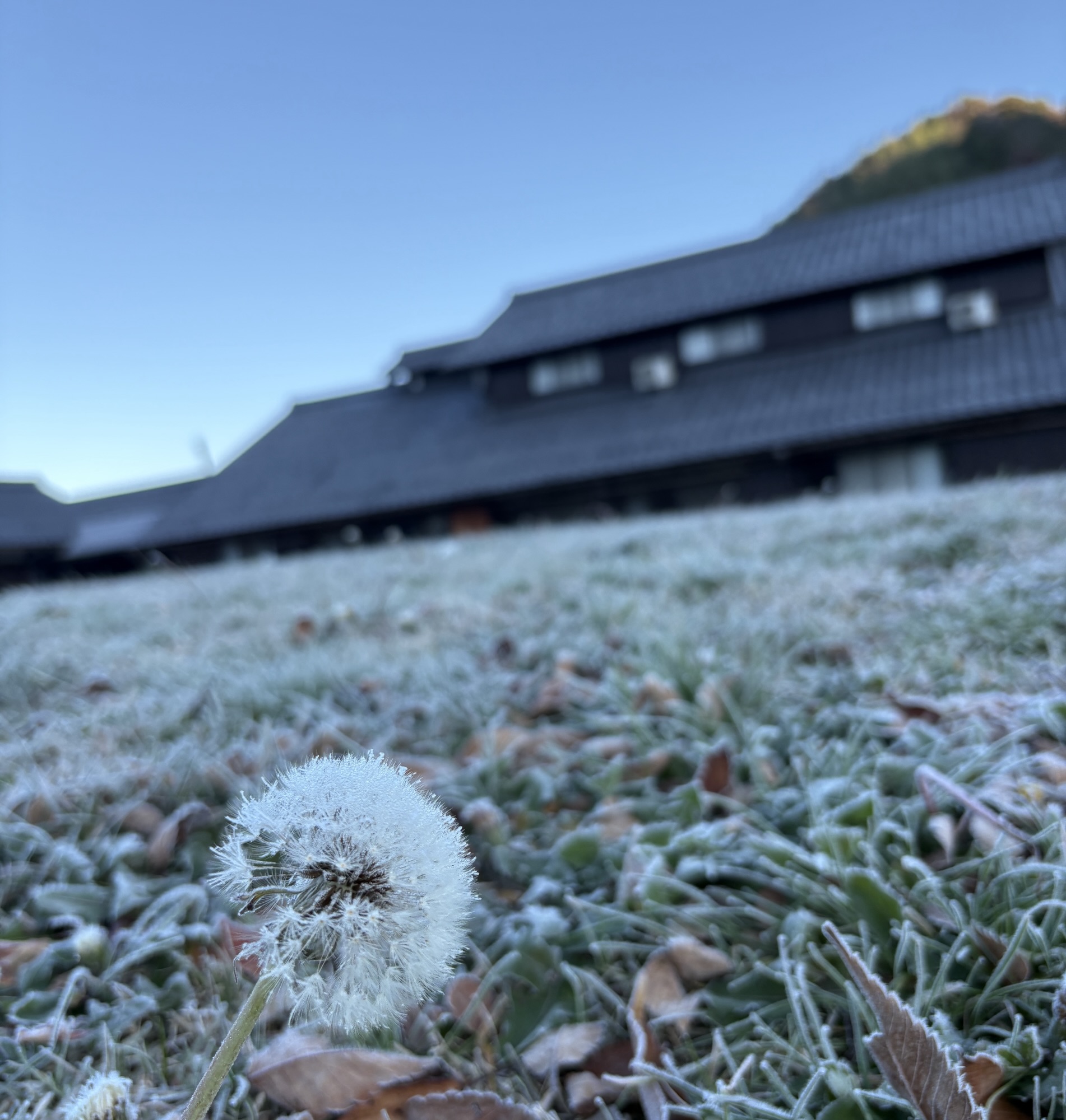朝から霜が降り風か冷たい日