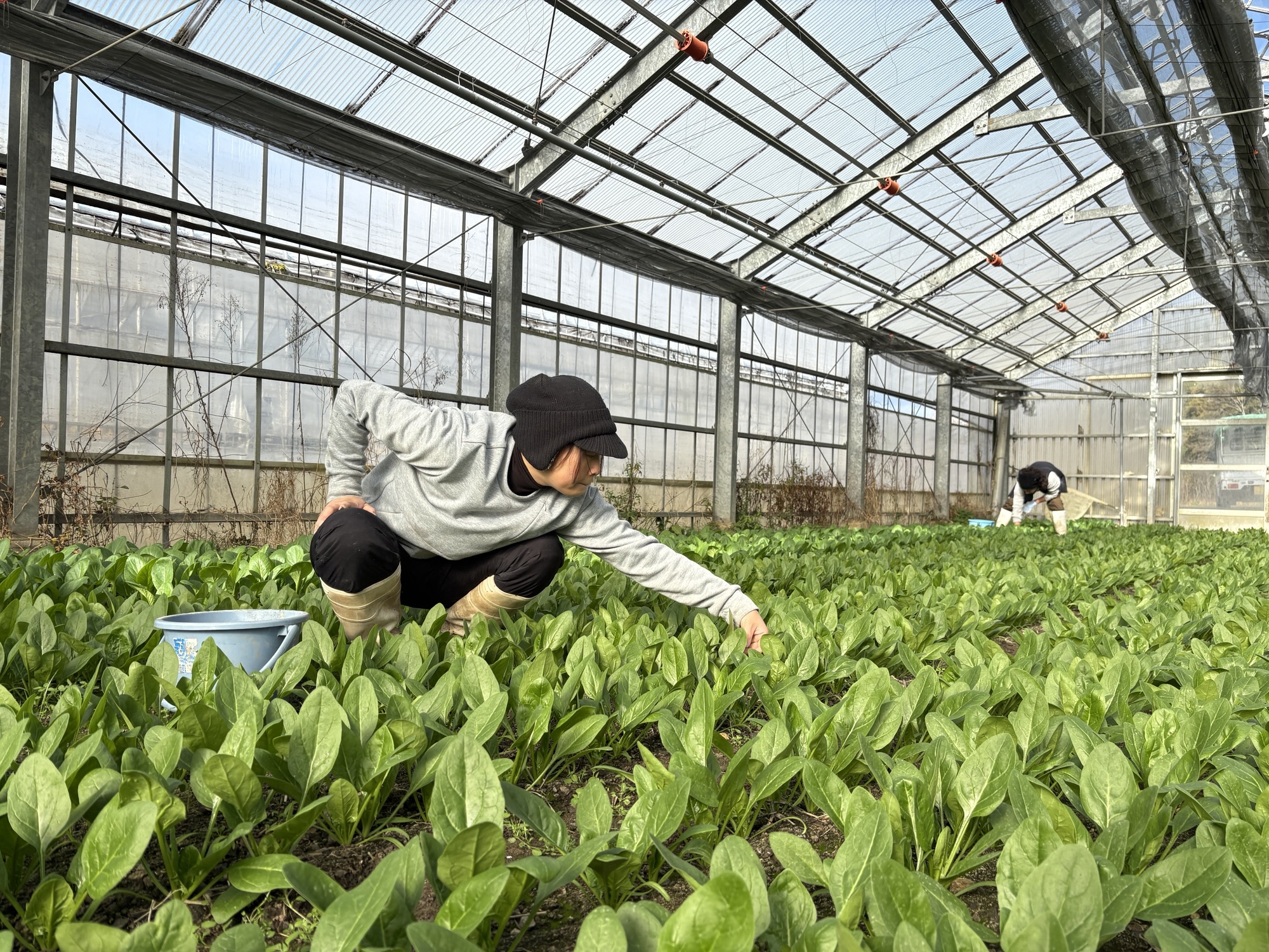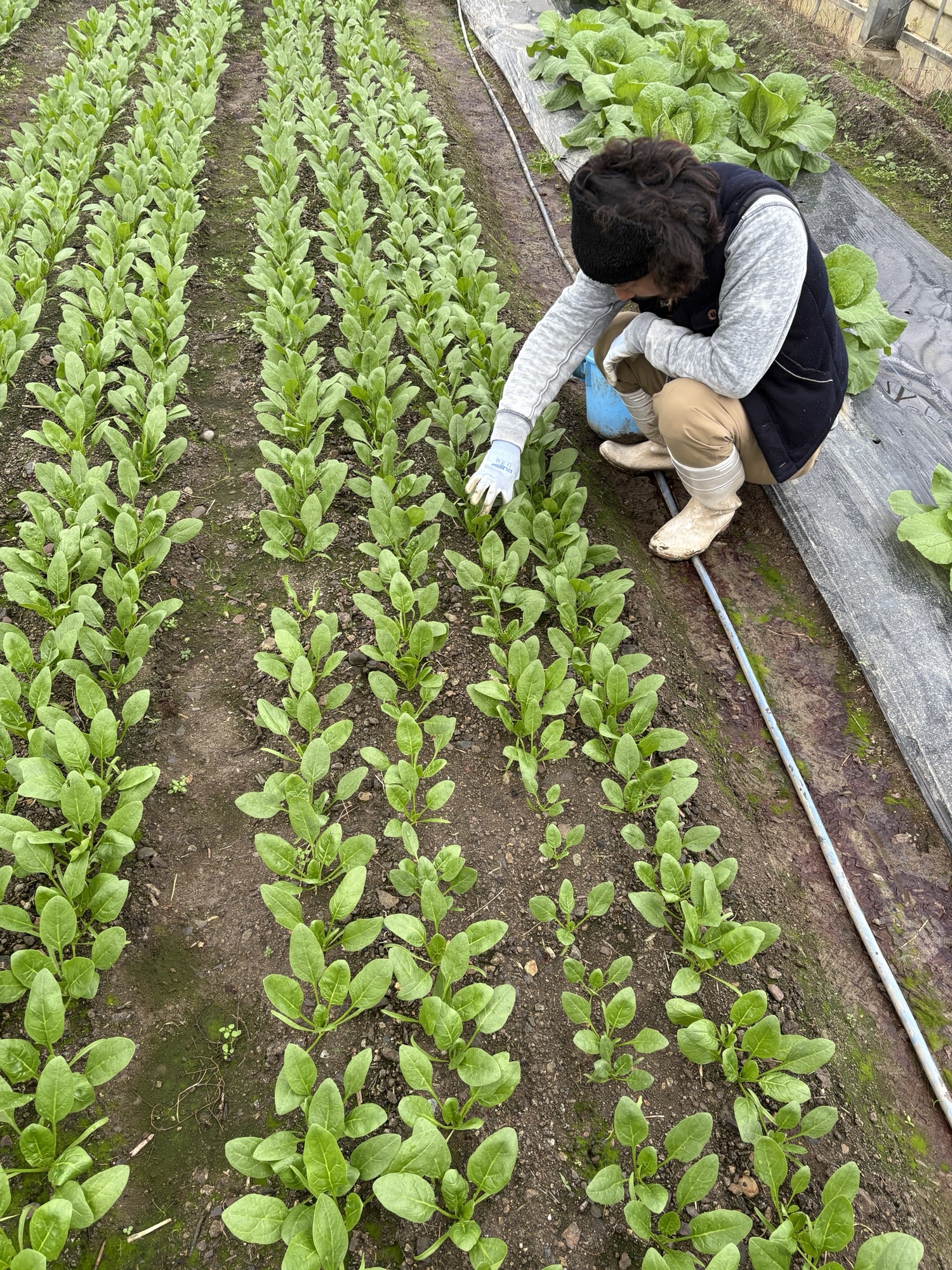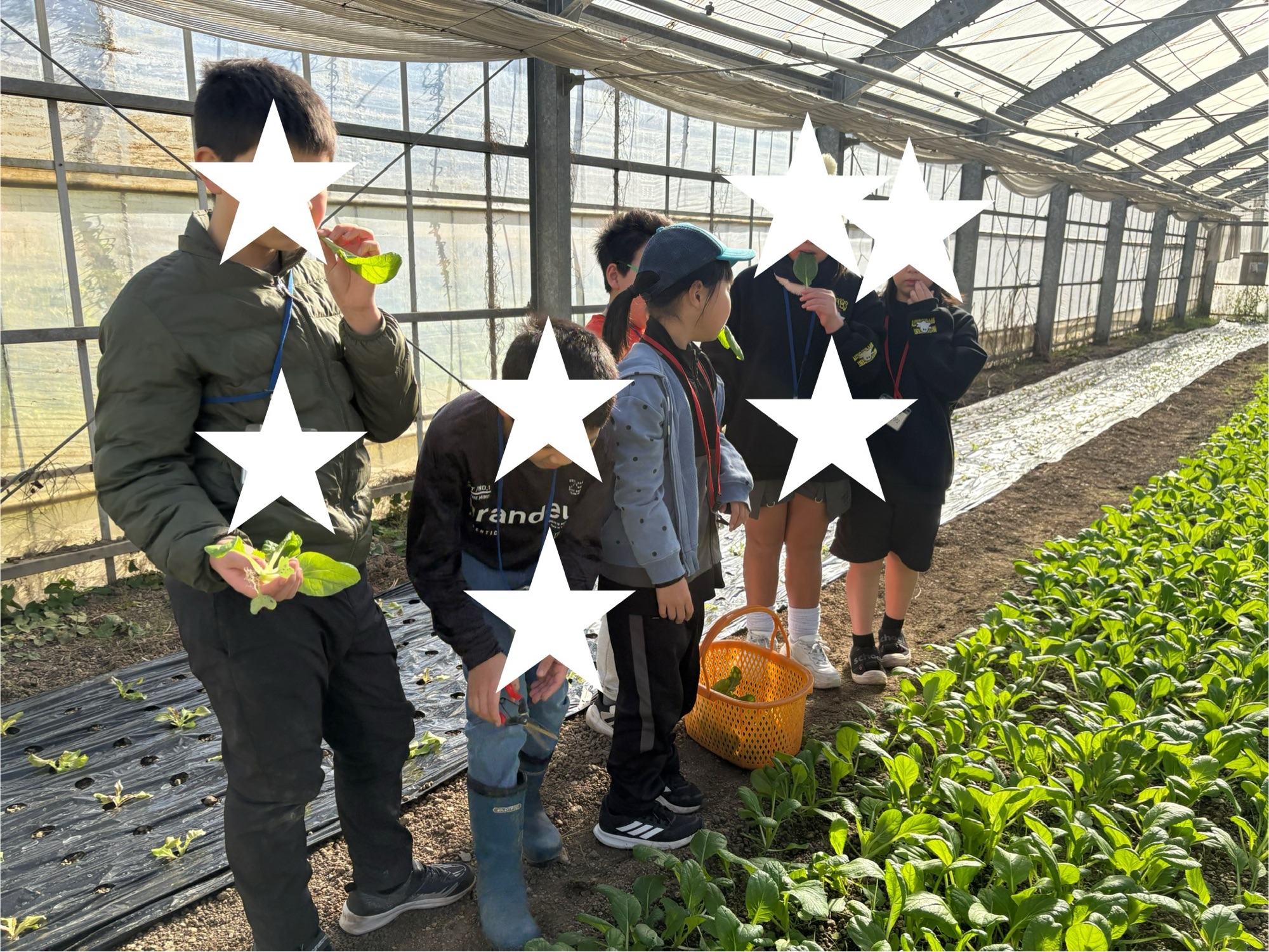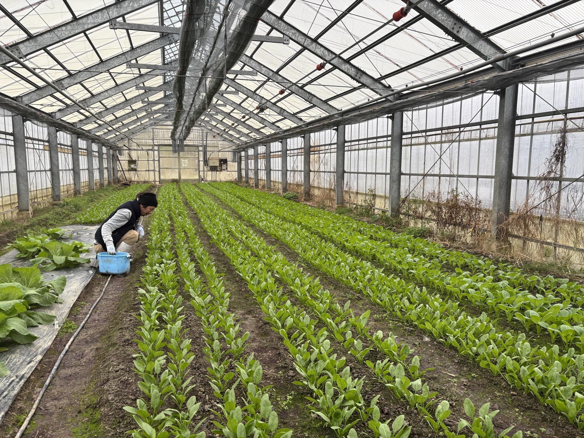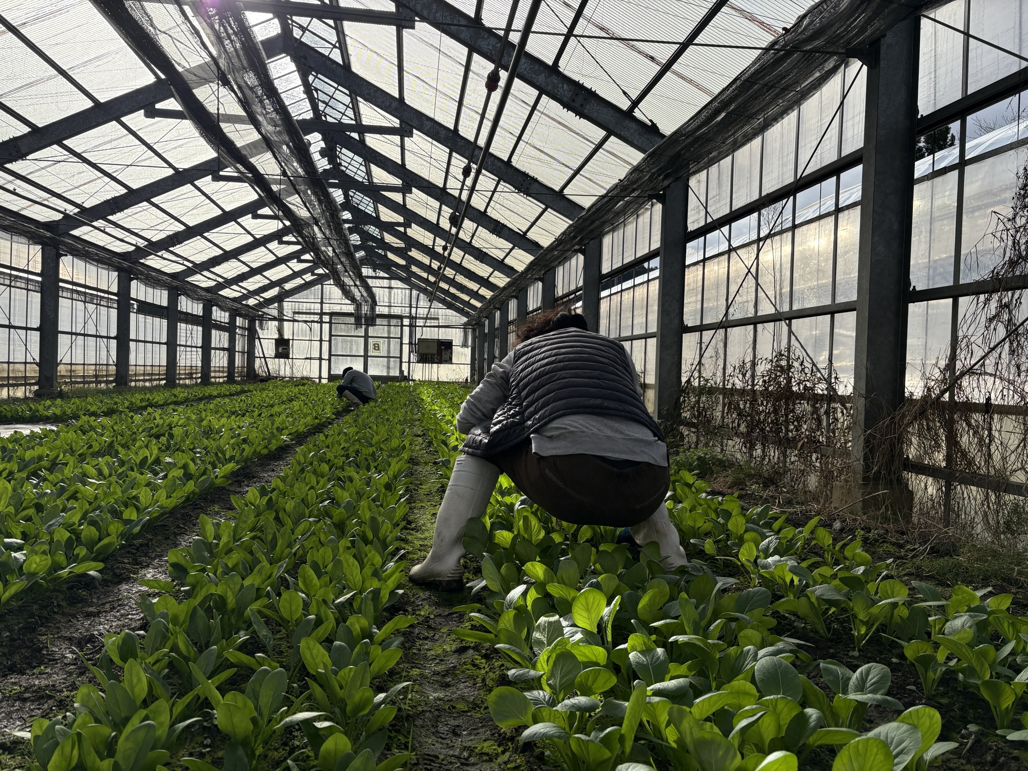 ハウスで採れたて菜っぱ達を頂き