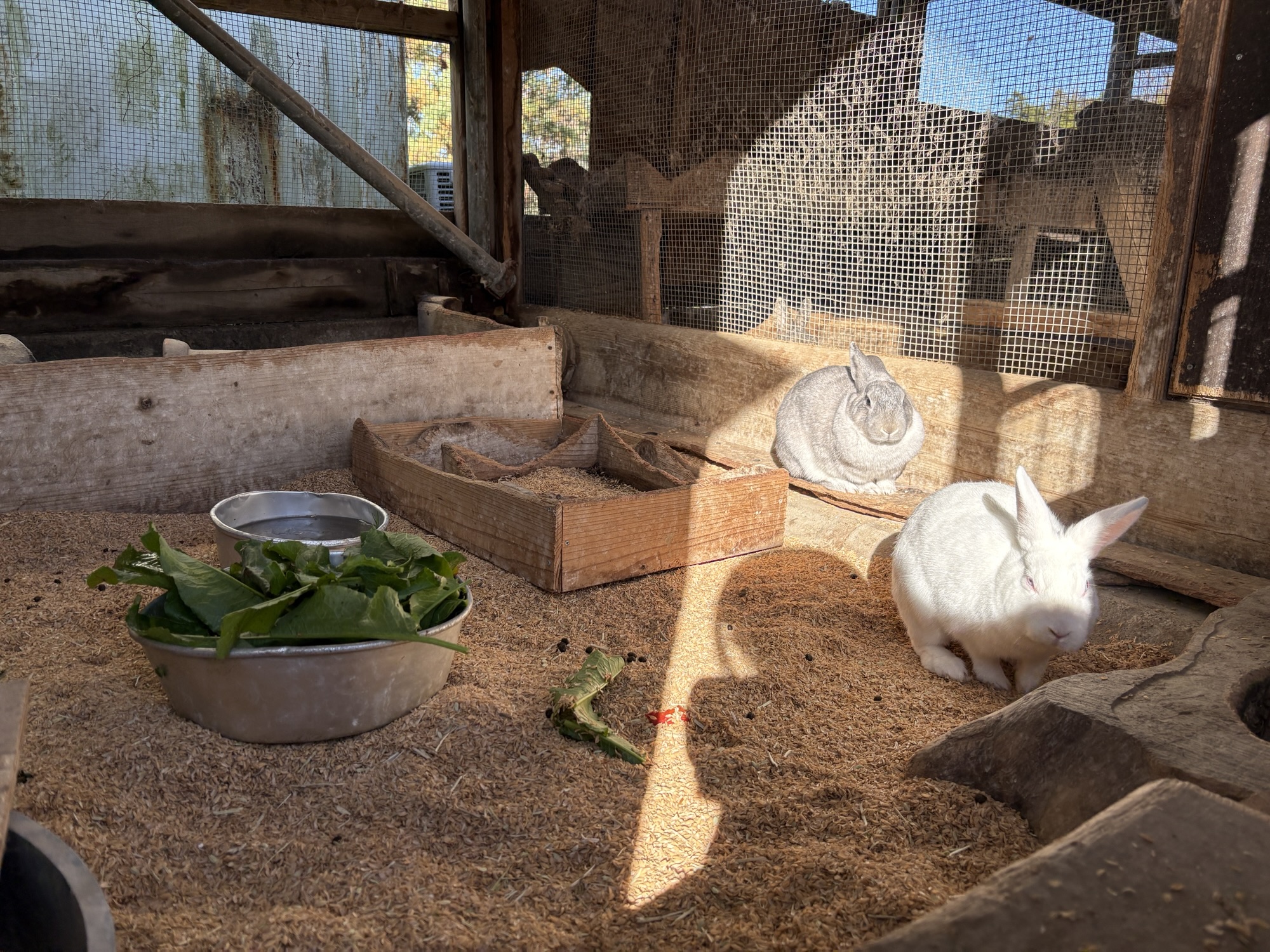 羽毛に包まれてる、ウサギやニワトリやヤギですが