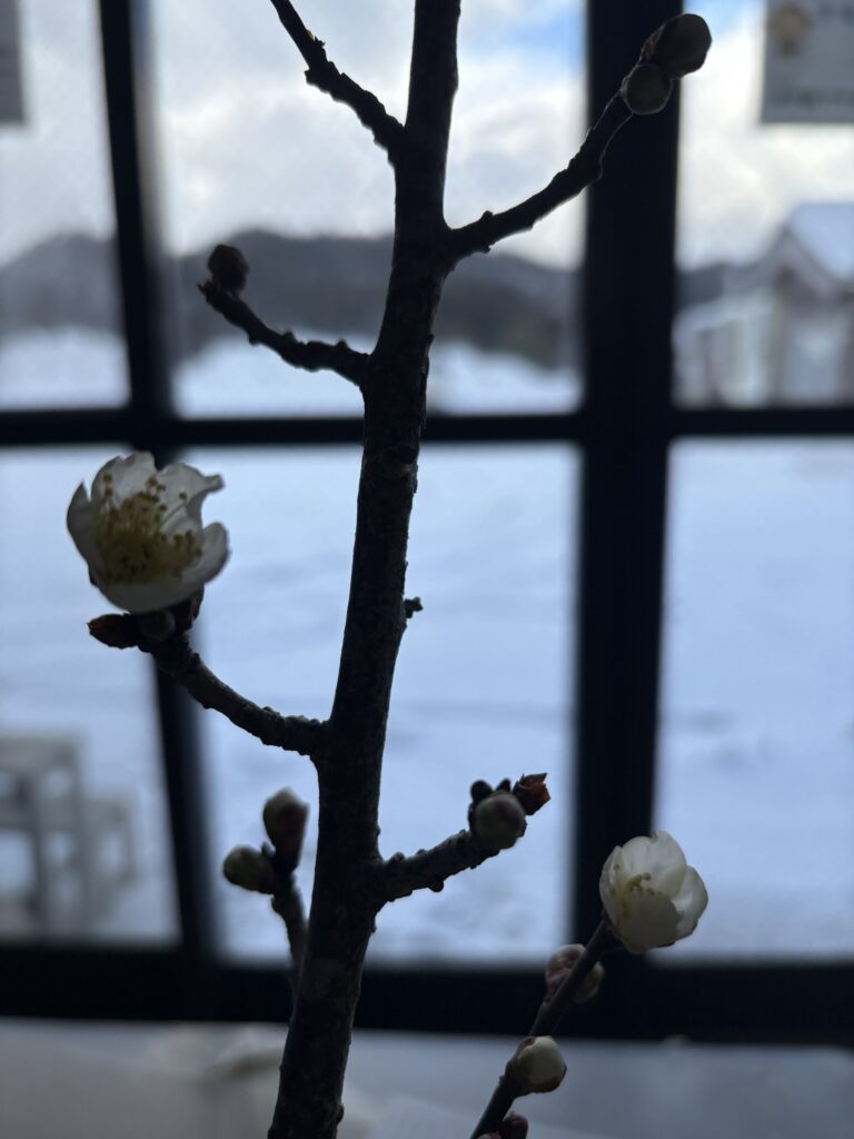 研修生吉川氏の梅の花が咲いてきました。