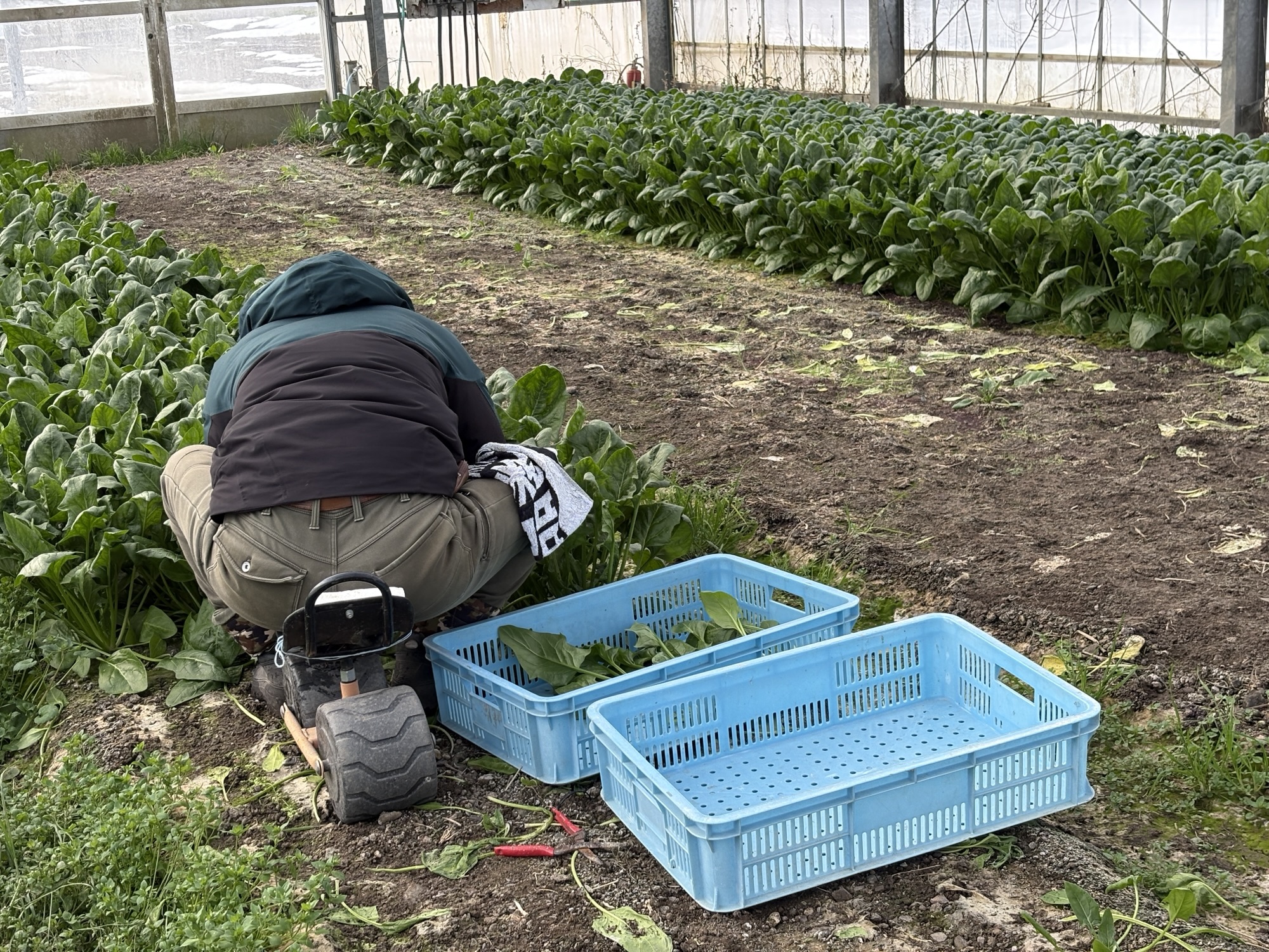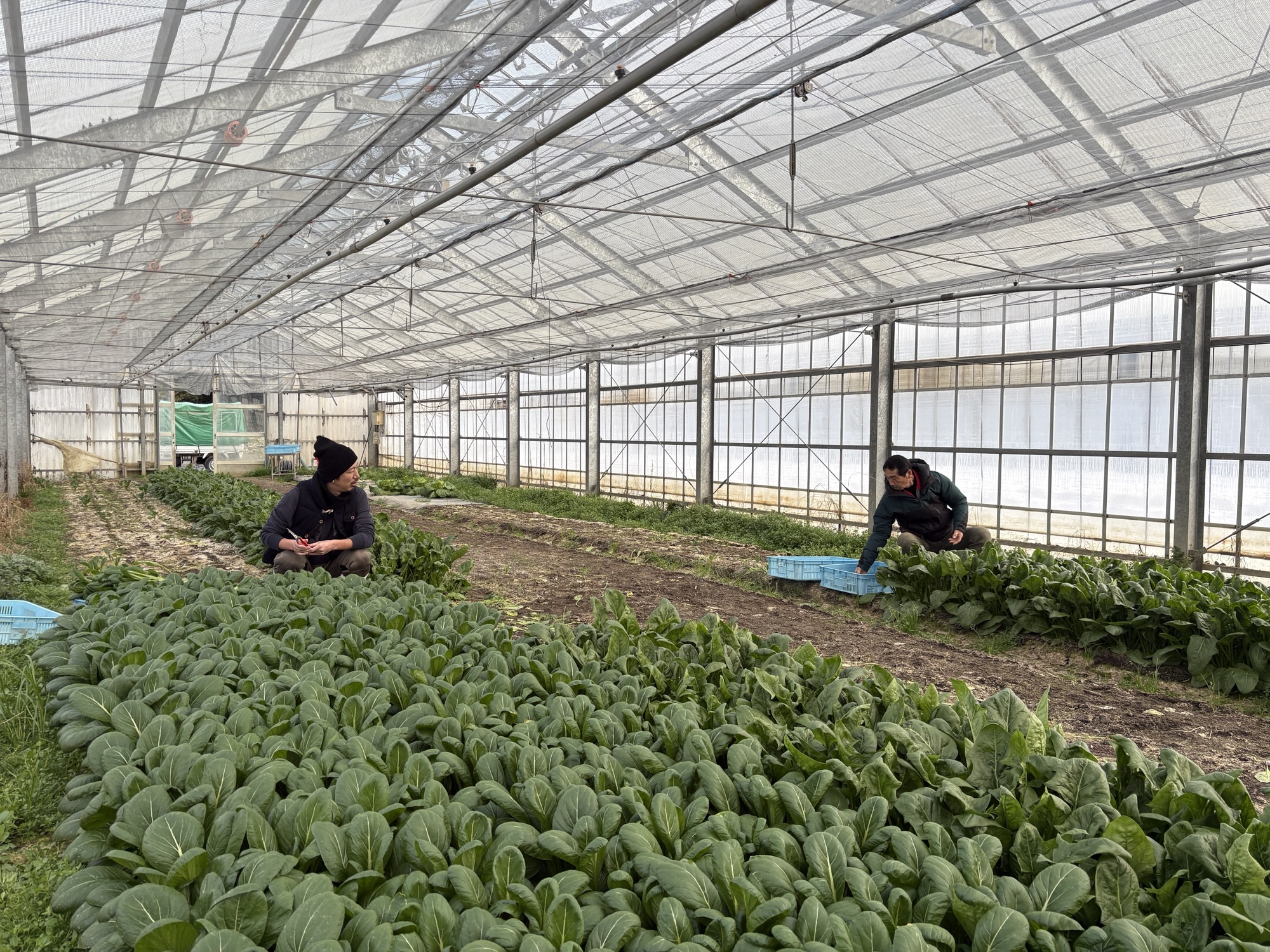 超スーパー助っ人 2月16日(月)曇 今日は超スーパー助っ人参上 じーちゃんが、集落のサロンにて販売注文を沢山受けてくださったので 研修生 松屋氏のほうれん草収穫お手伝い。 何度も収穫に行ってくれました。 投稿:八代