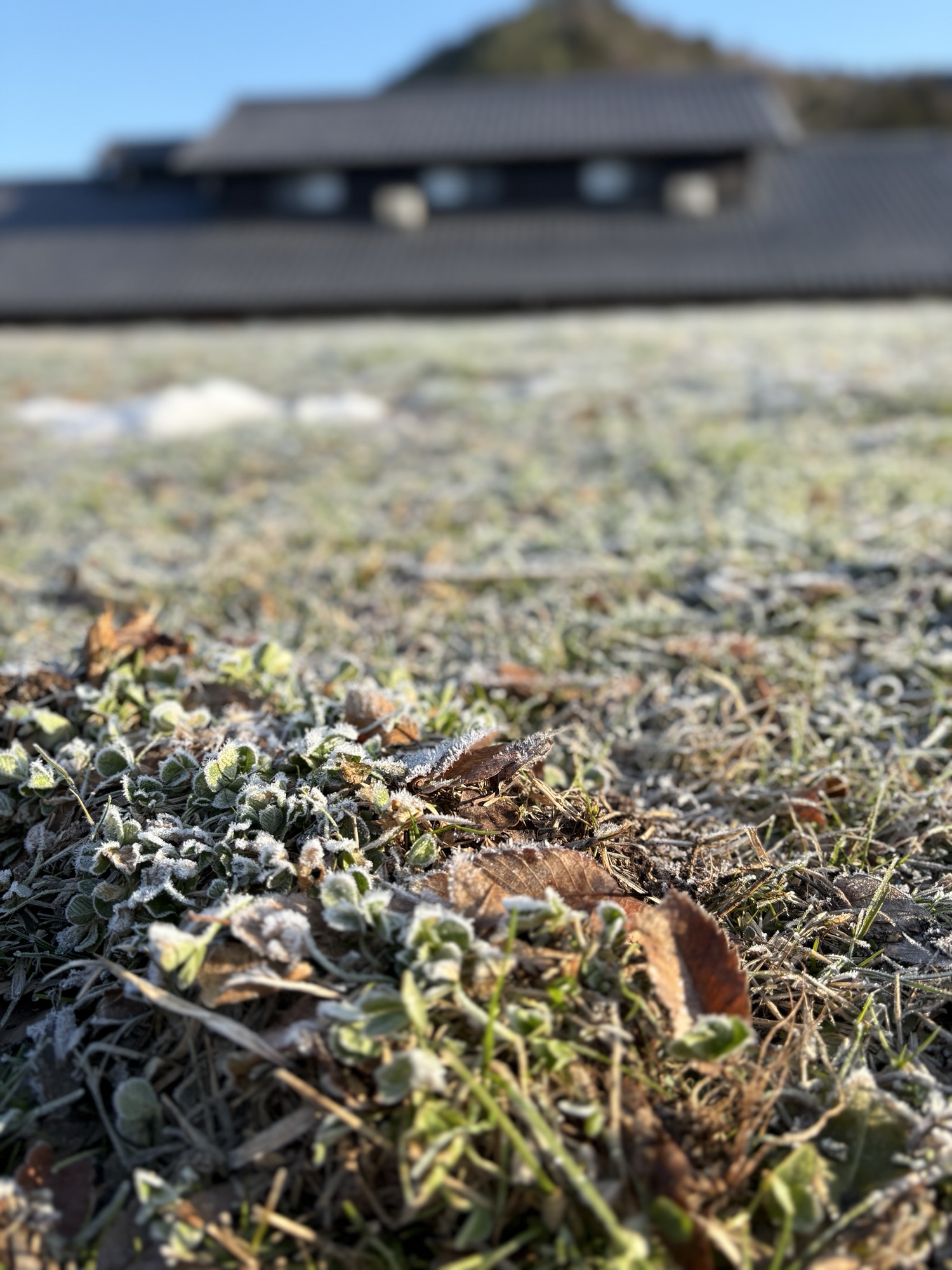 朝から霜が降りてます。