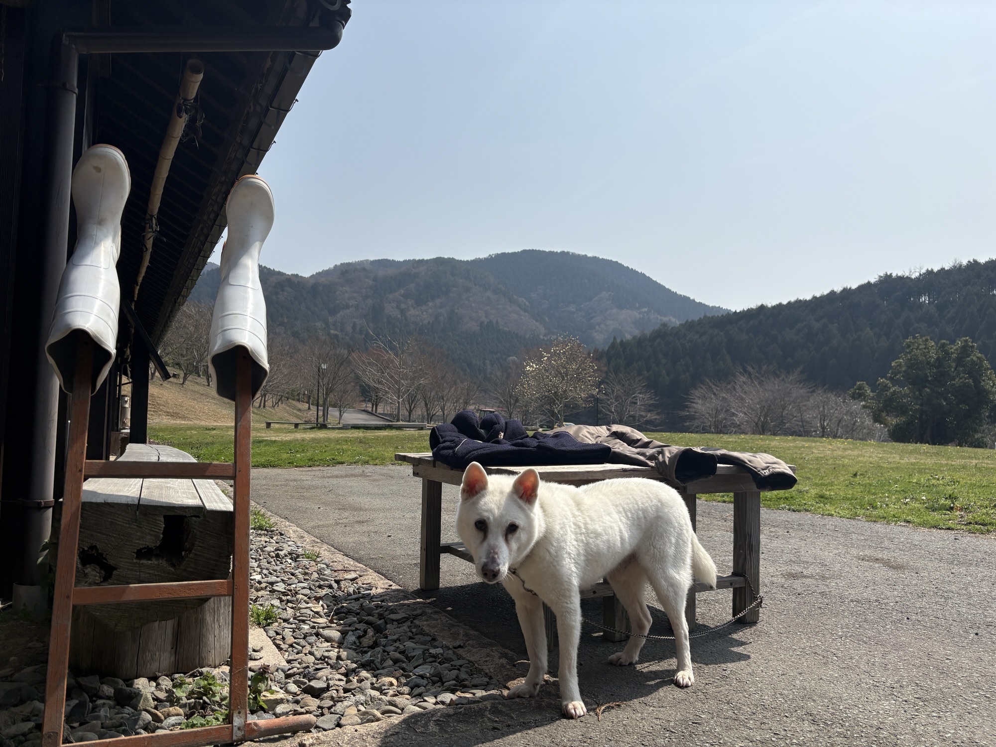 番犬 田もキレイに洗ってもらって干されてます。