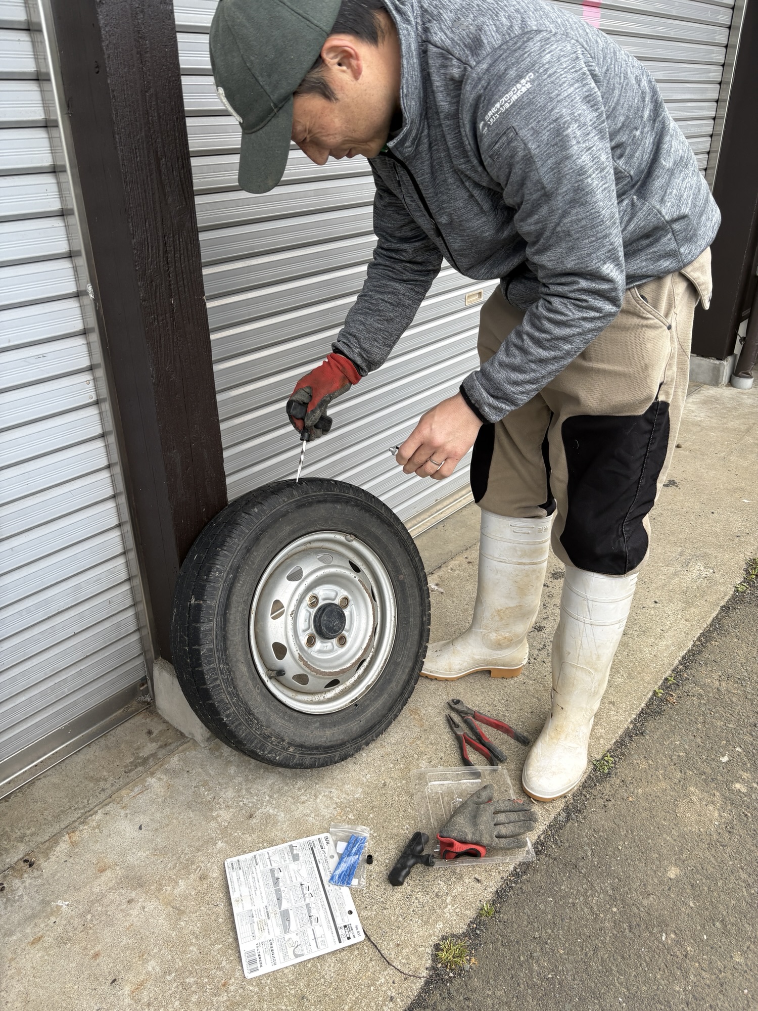 タイヤに釘が刺さりパンク