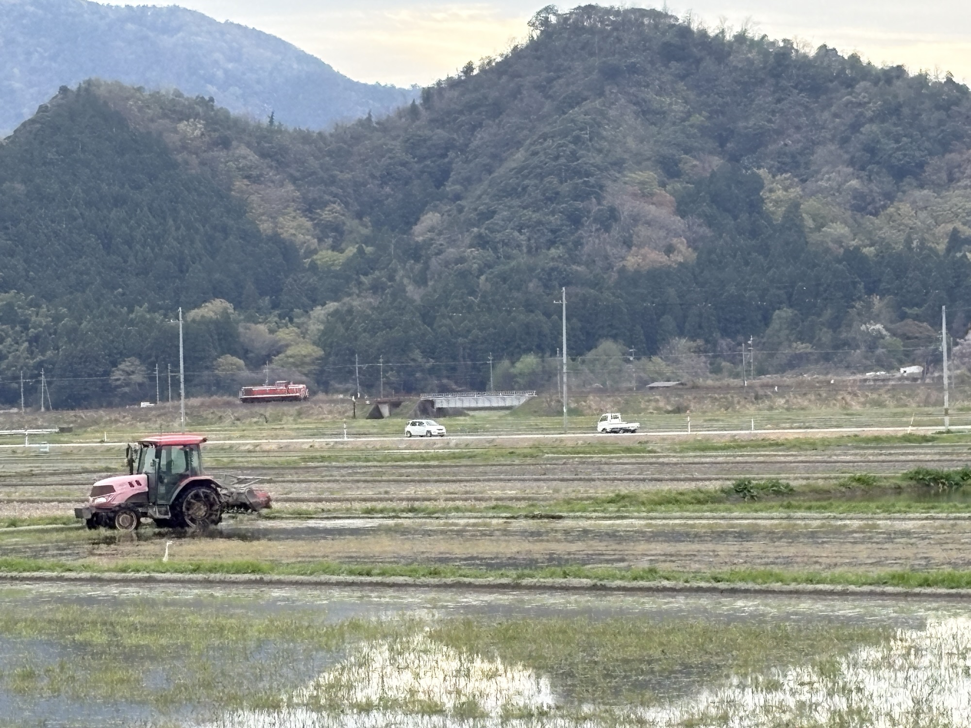 私も農楽舎のトラクターと線路と桜が見える位置を陣取り撮影しました(^_^)v