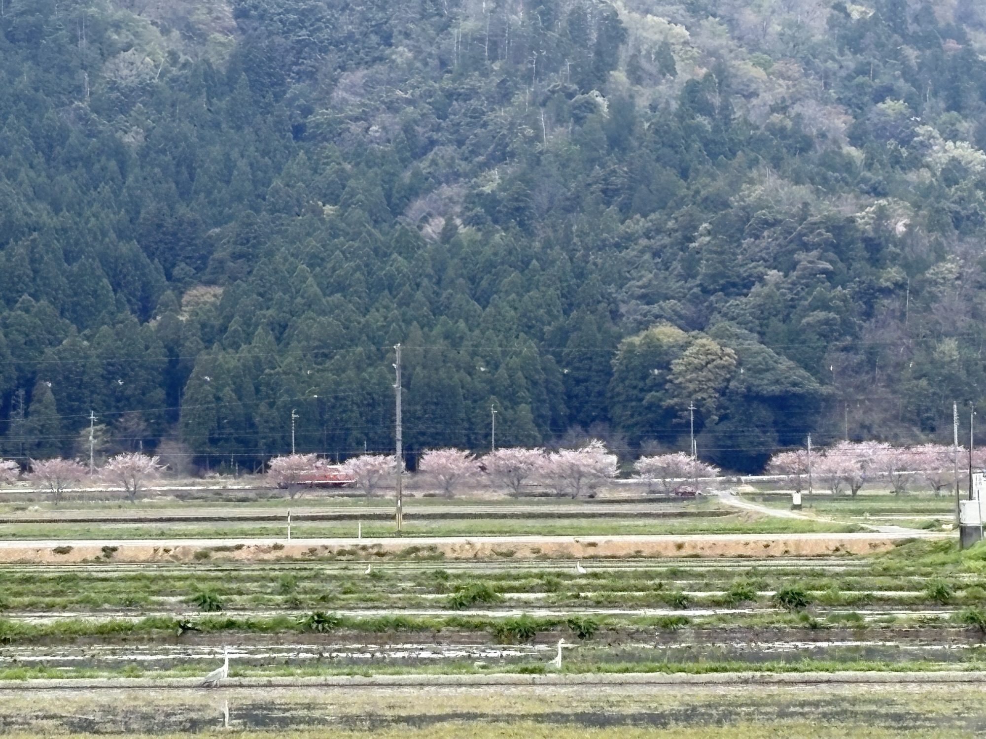 小浜線の線路沿いを撮り鉄さん達が桜沿いなカメラを構えていたので