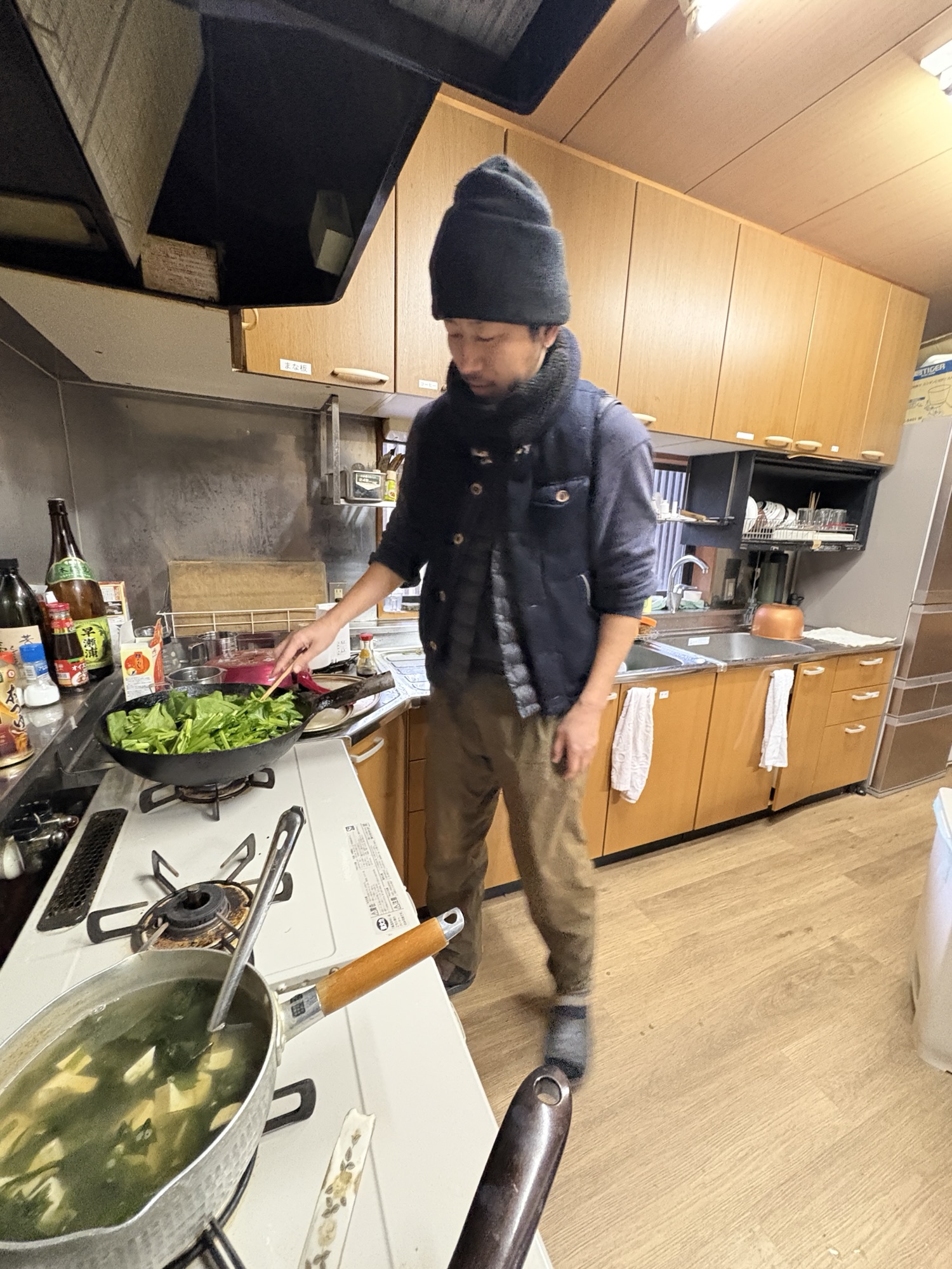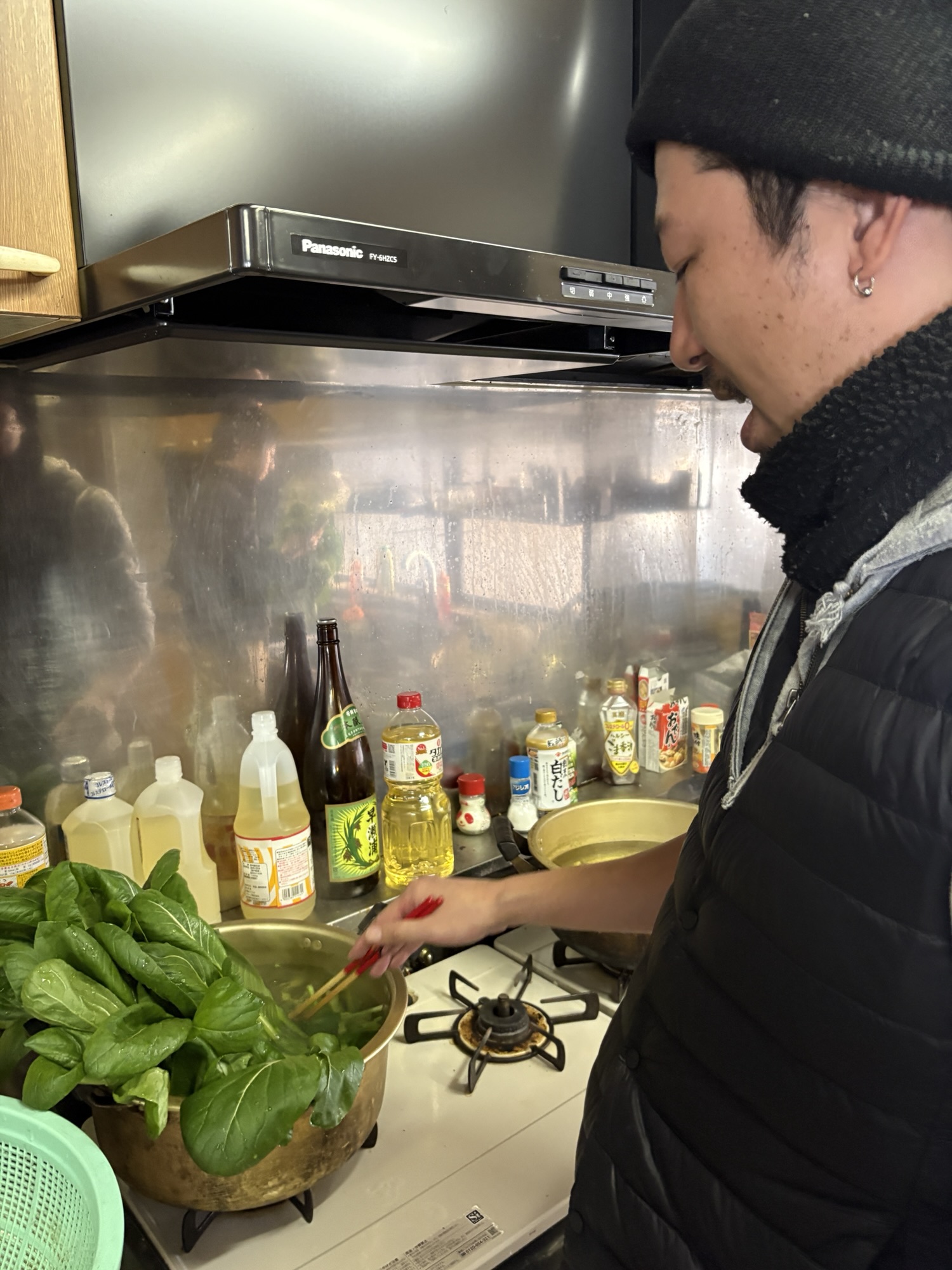 食事当番で自作の農産物を調理し