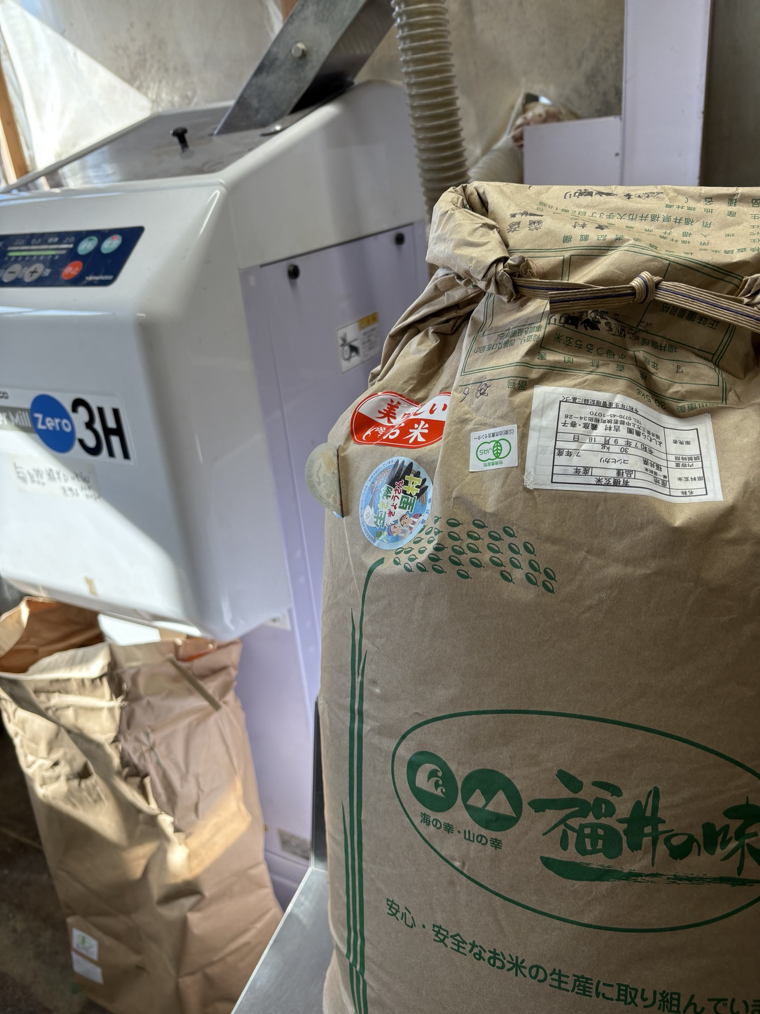 本日、農楽舎が10団体のお米をまとめて精米、袋つめし給食センターに出荷させてもらいました。