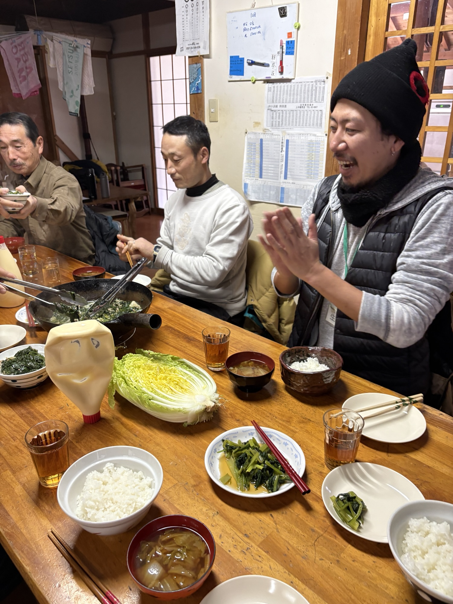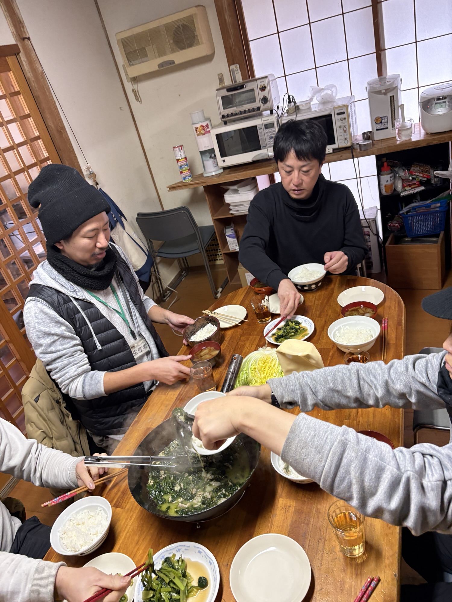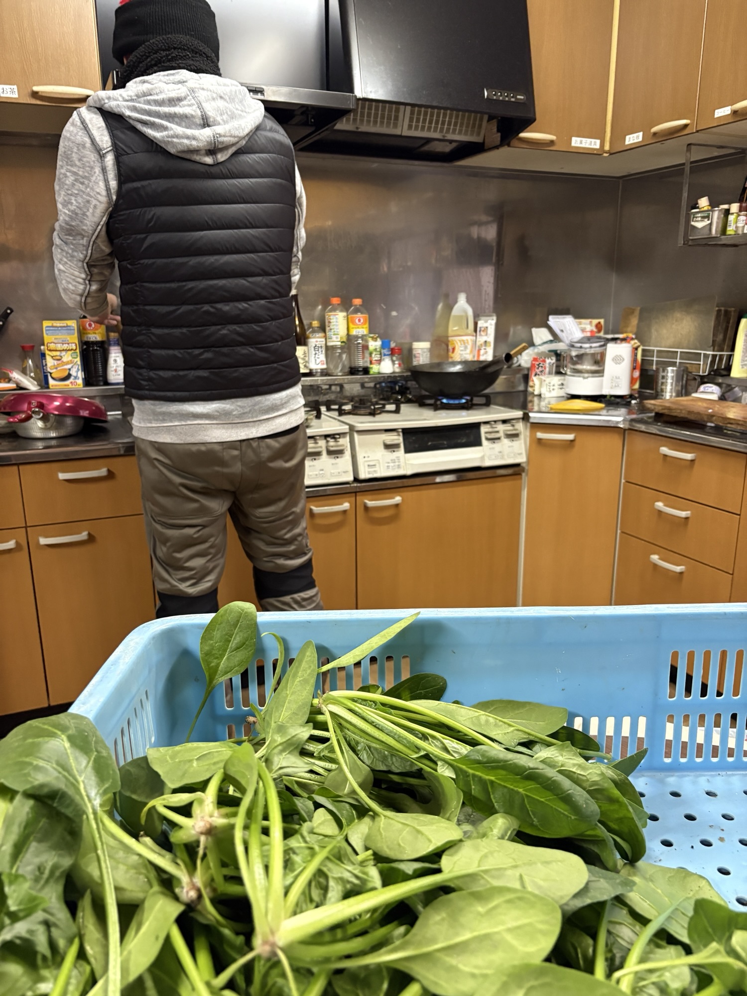 農楽舎内ほうれん草の収穫祭