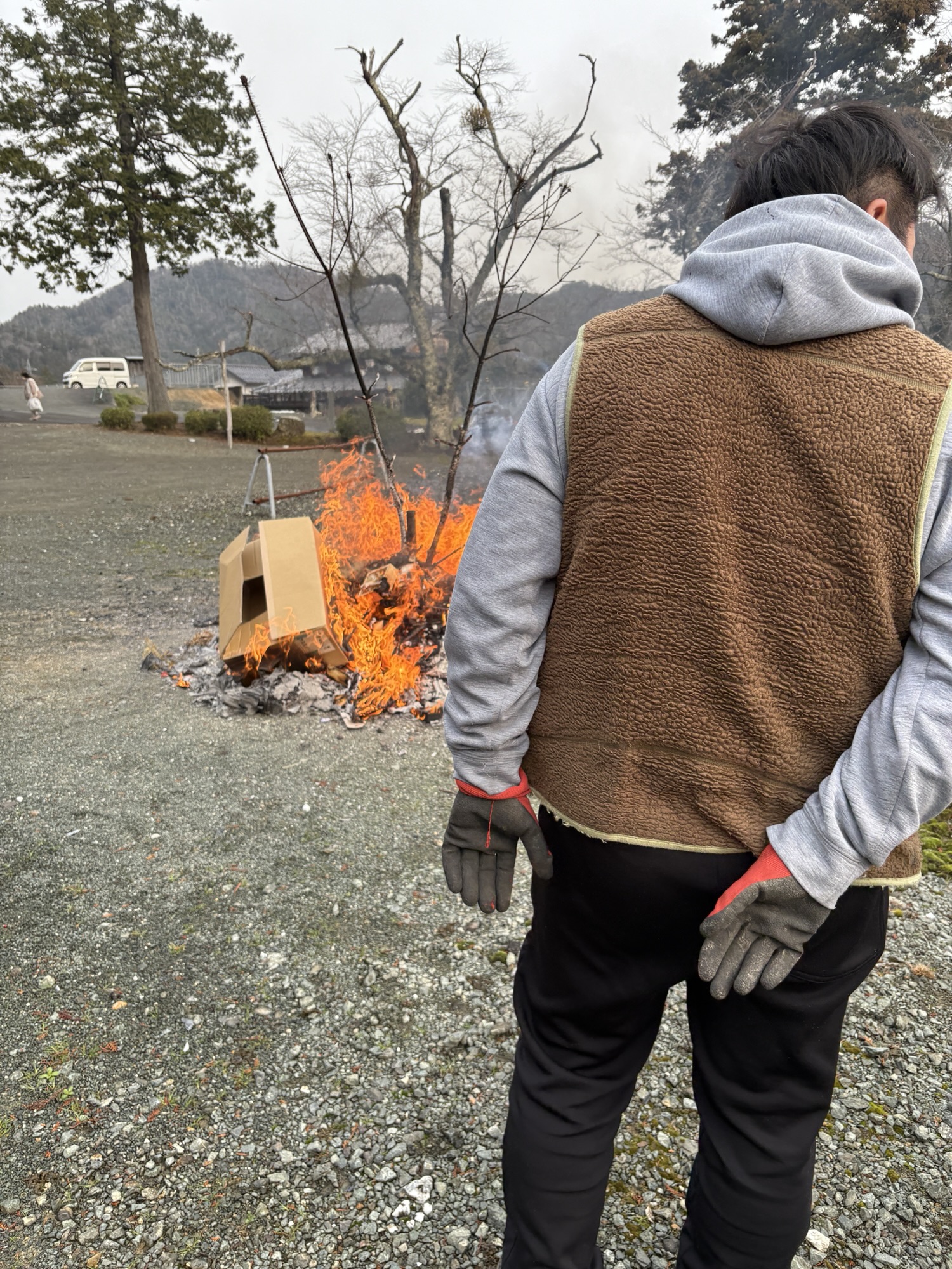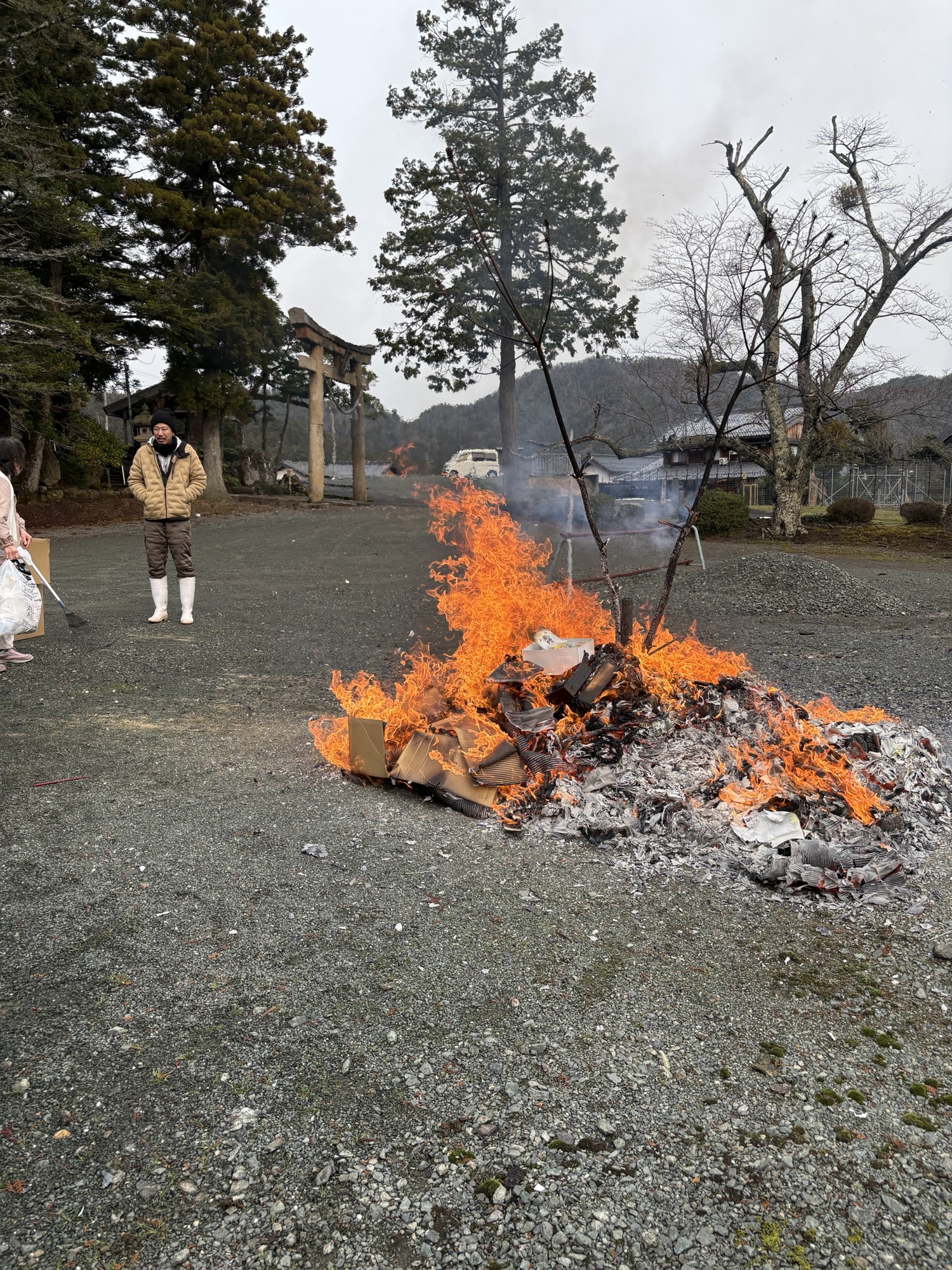 集落にある恵比須神社のどんと焼き
