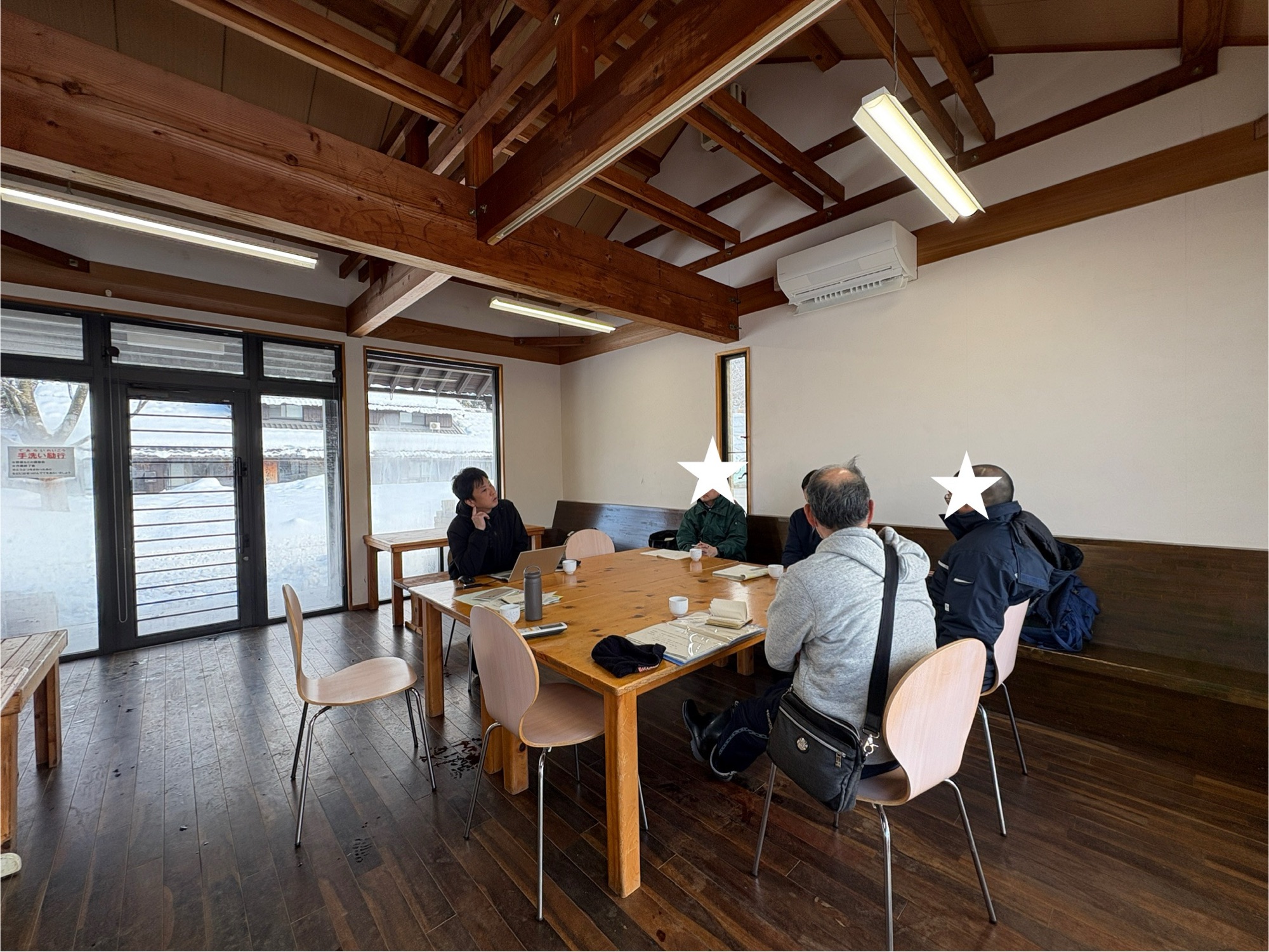 研修生吉川氏の梅農家になる為の農家さんと町、県と農楽舎での打ち合わせ。